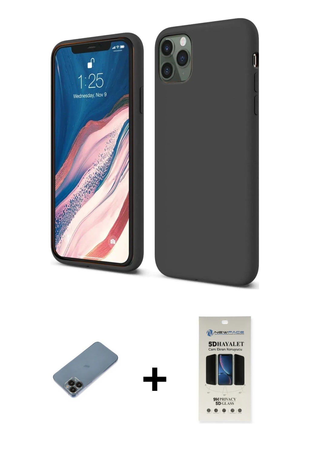 iPhone 11 Pro Kozmos Yansıma Özel Seri - Siyah 5D Hayalet Cam Ekran Koruyucu + Siyah Shine Kamera Lens Koruma Cam, iPhone 11 Pro modeli için kılıf, ekran koruyucu ve kamera lens koruyucuyu bir araya getiren premium bir settir. Görünümde kılıfta Siyah tonu, lens koruyucuda Siyah detay ile bütünlüklü ve dikkat çekici bir stil sunar. Set; tam uyumlu koruma, ekranı çizilme ve darbelere karşı destekleyen koruma ve ekranı çizilme ve darbelere karşı destekleyen koruma sağlayarak cihazınızı günlük kullanıma karşı destekler. Tek paketle hem estetik hem de kapsamlı korumayı pratik şekilde tamamlayabilirsiniz.