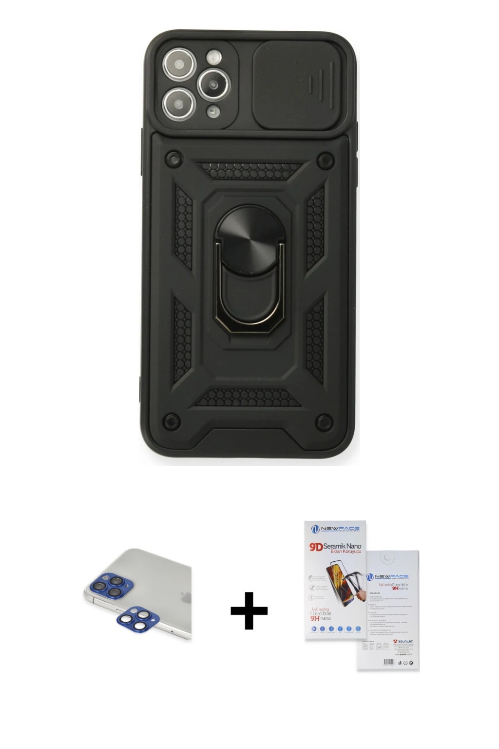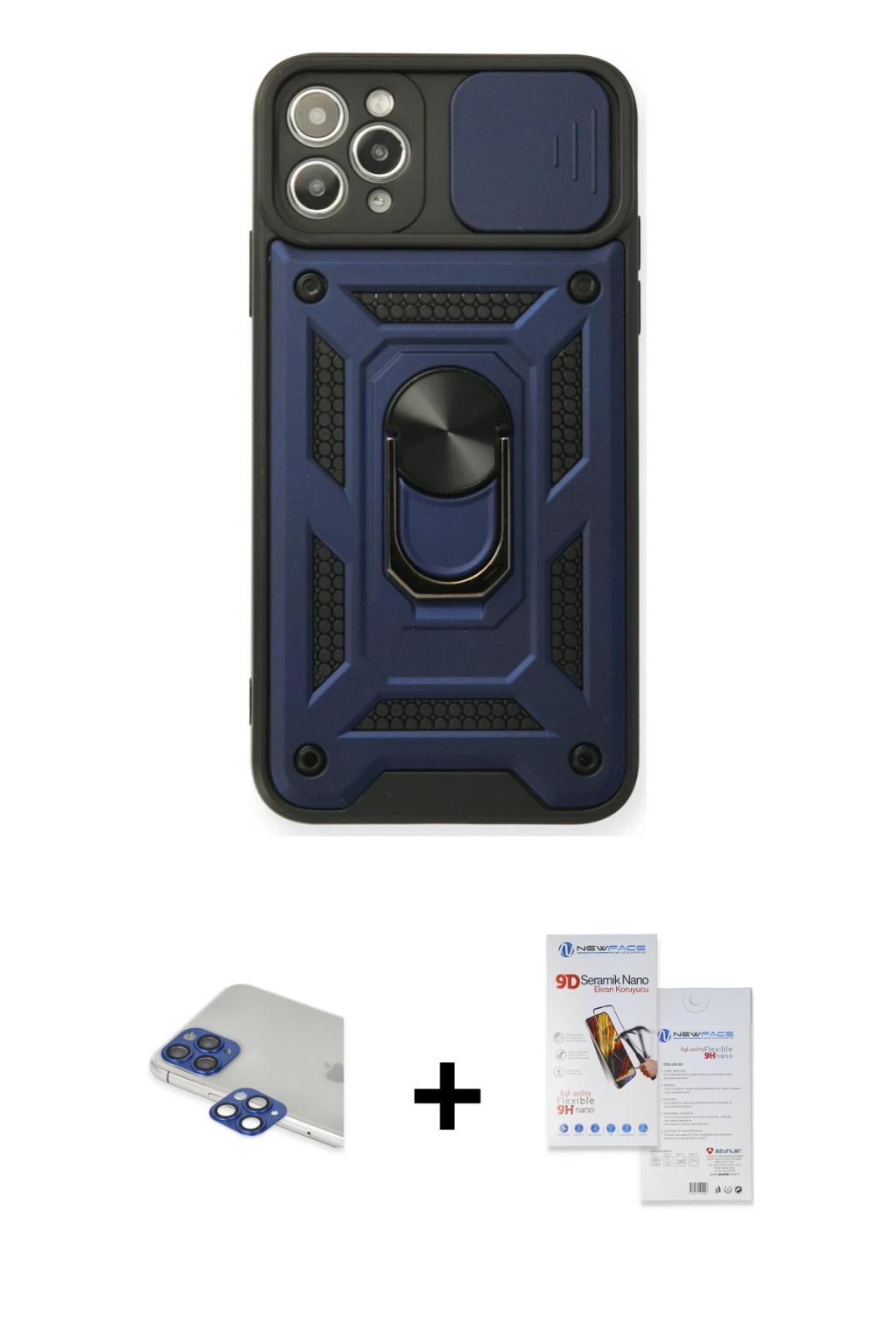 iPhone 11 Pro Max Ahenk Klasik - Siyah Seramik Nano Ekran Koruyucu + Lacivert Pers Alüminyum Kamera Lens, iPhone 11 Pro Max modeli için kılıf, ekran koruyucu ve kamera lens koruyucuyu bir araya getiren premium bir settir. Görünümde kılıfta Siyah tonu, lens koruyucuda Lacivert detay ile bütünlüklü ve dikkat çekici bir stil sunar. Set; kamera bölümünü ekstra güvenceye alan koruma, ekranı çizilme ve darbelere karşı destekleyen koruma ve kamera bölümünü ekstra güvenceye alan koruma sağlayarak cihazınızı günlük kullanıma karşı destekler. Tek paketle hem estetik hem de kapsamlı korumayı pratik şekilde tamamlayabilirsiniz.