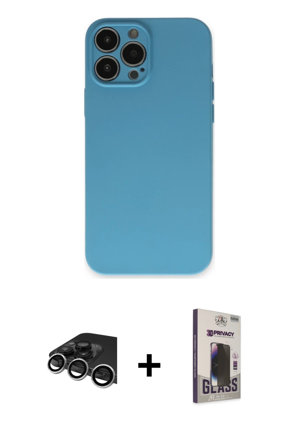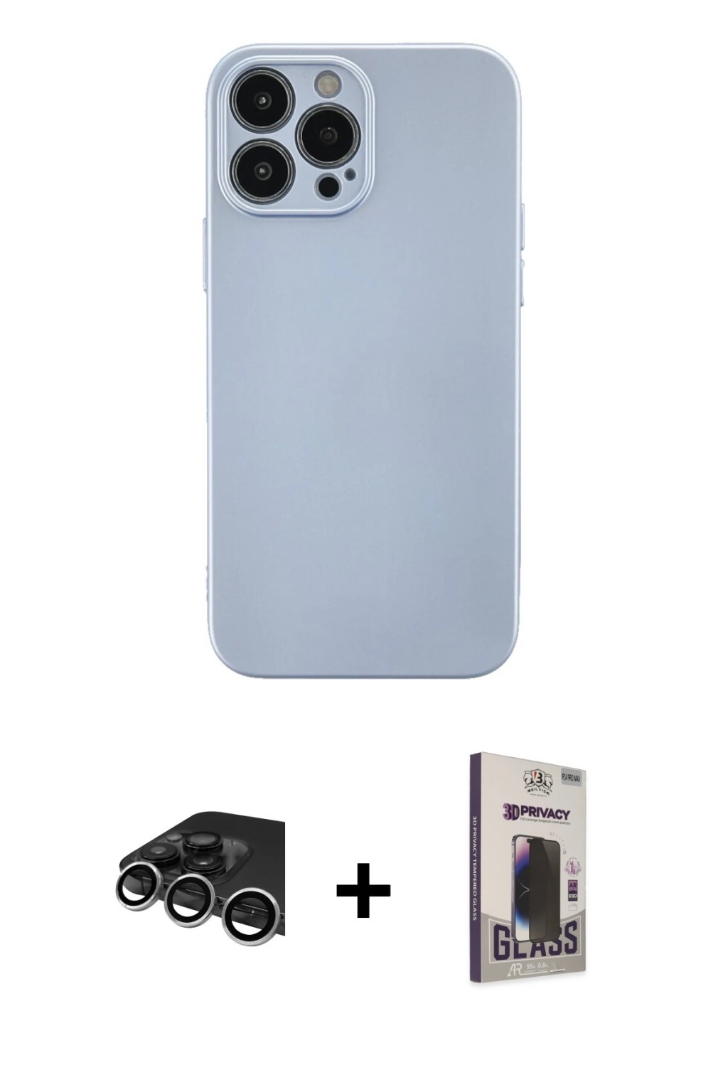 iPhone 13 Pro Max Ahenk Serisi - Siyah Bilvis Hayalet Cam Ekran Koruyucu + Gümüş Raze Metal Kamera Lens, iPhone 13 Pro Max modeli için kılıf, ekran koruyucu ve kamera lens koruyucuyu bir araya getiren premium bir settir. Görünümde kılıfta Sky Blue tonu, lens koruyucuda Gümüş detay ile bütünlüklü ve dikkat çekici bir stil sunar. Set; tam uyumlu koruma, ekranı çizilme ve darbelere karşı destekleyen koruma ve kamera bölümünü ekstra güvenceye alan koruma sağlayarak cihazınızı günlük kullanıma karşı destekler. Tek paketle hem estetik hem de kapsamlı korumayı pratik şekilde tamamlayabilirsiniz.