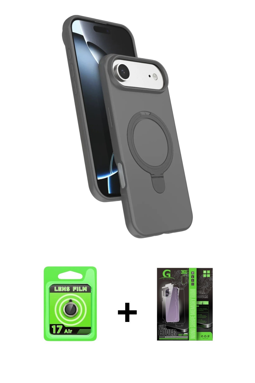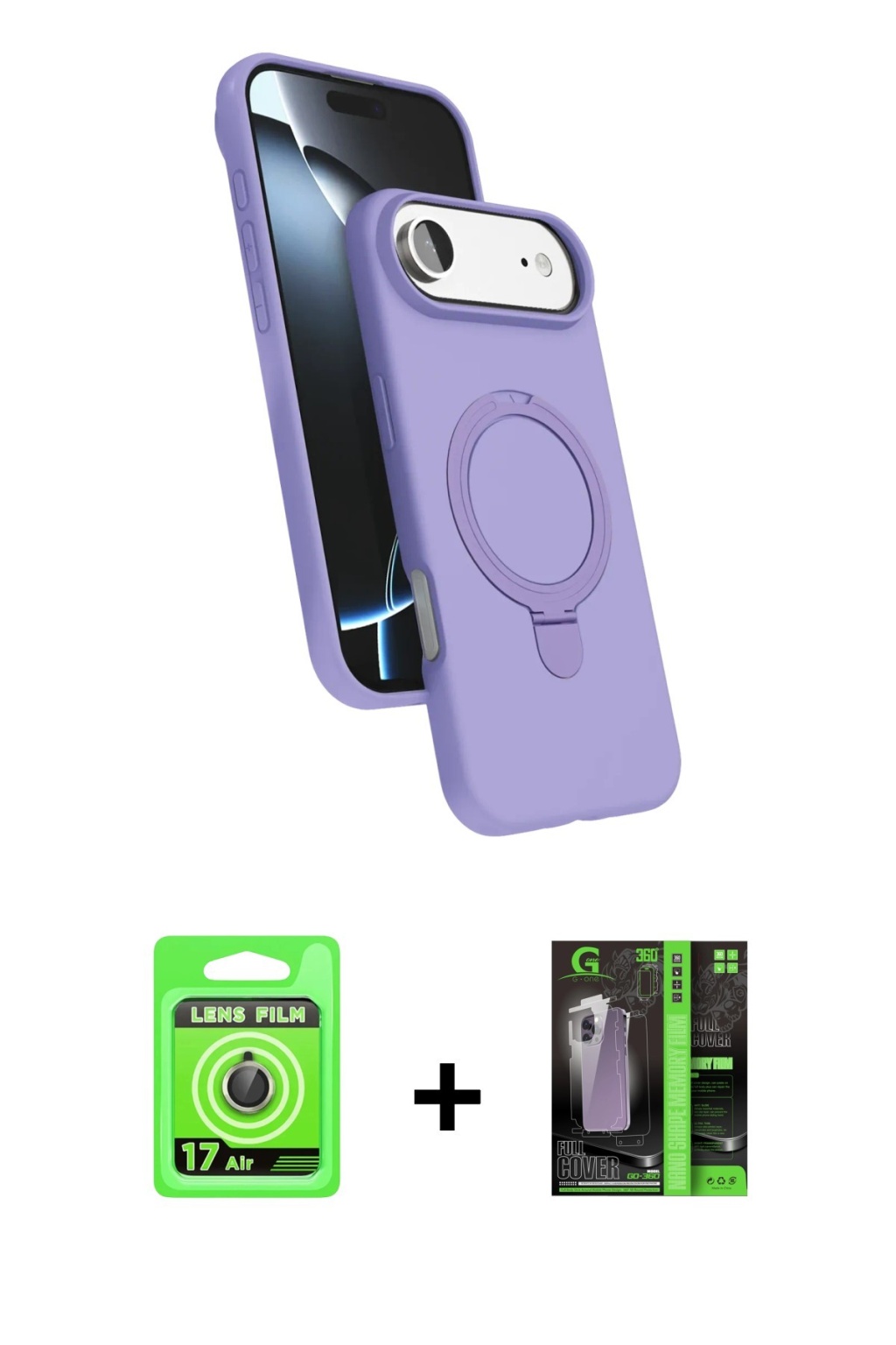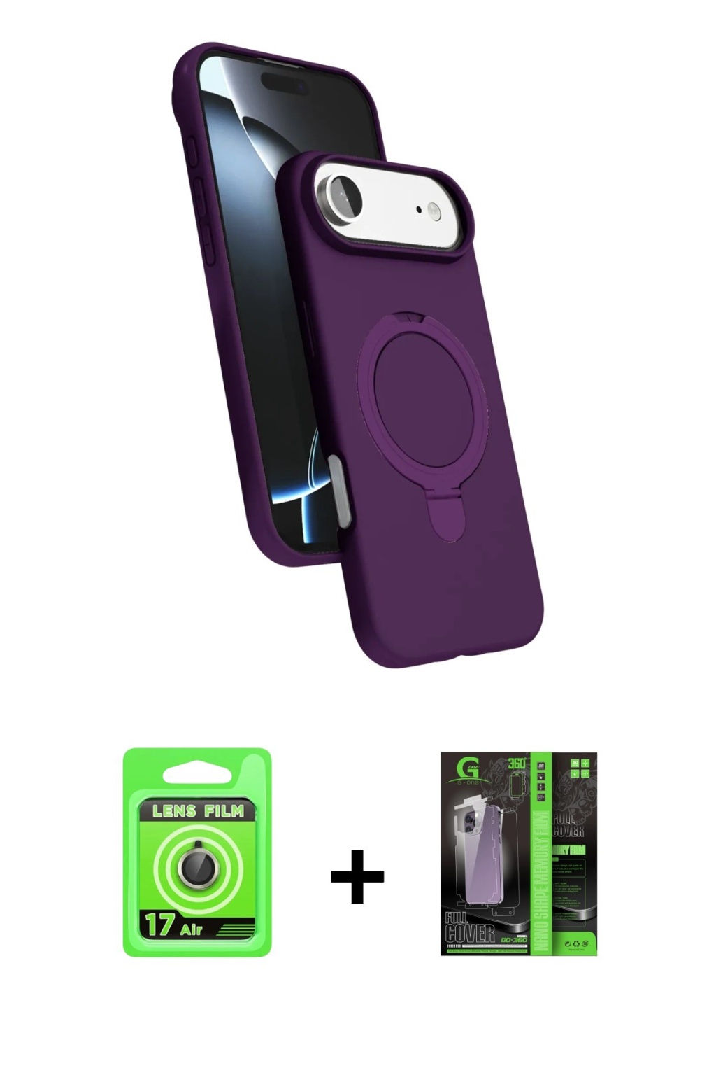 iPhone 17 Air İz Işık Koleksiyonu - Şeffaf 360 Full Body Arka Koruyucu + Gold Raze Metal Kamera Lens, iPhone 17 Air modeli için kılıf, ekran koruyucu ve kamera lens koruyucuyu bir araya getiren premium bir settir. Görünümde kılıfta Derin Mor tonu, lens koruyucuda Gold detay ile bütünlüklü ve dikkat çekici bir stil sunar. Set; günlük kullanıma uygun şık koruma, ekranı çizilme ve darbelere karşı destekleyen koruma ve kamera bölümünü ekstra güvenceye alan koruma sağlayarak cihazınızı günlük kullanıma karşı destekler. Tek paketle hem estetik hem de kapsamlı korumayı pratik şekilde tamamlayabilirsiniz.